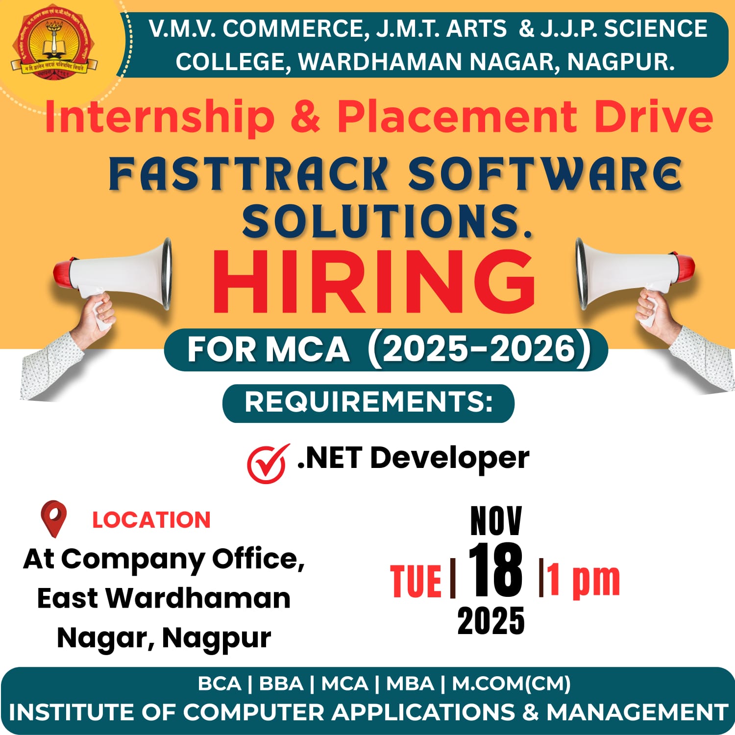 Internship & Placement drive with Fasttrack Software Solutions on 18/11/2025 [click here]