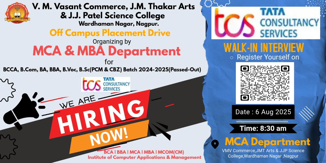 Off-Campus Placement Drive with TCS by MCA & MBA Department 06/08/2025 [click here]